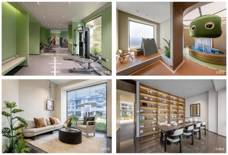 建筑面积约600㎡庭院架空层泛会所中,打造阅读、社交、健身、瑜伽、儿童游乐等主题,开放式设计,与中庭风景无界交融。