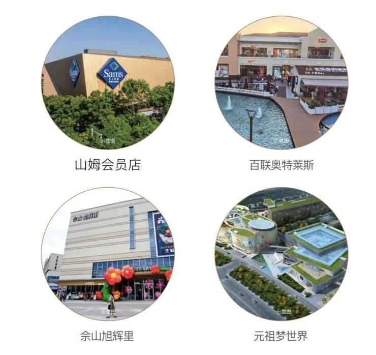 山姆会员店、百联奥特莱斯、合生新天地、元祖梦世界、佘山旭辉里等商业聚集。