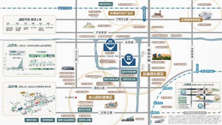 近邻嘉松中路、沈海高速等城市主干道;接驳地铁17号嘉松中路站、地铁9号线佘山站。