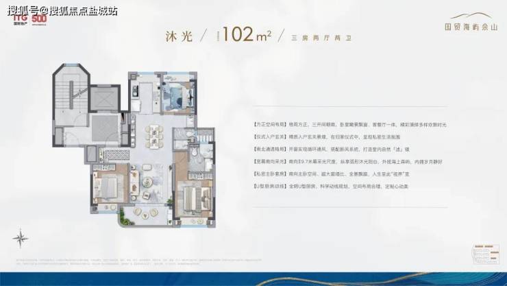 4、另有102㎡爆款伴墅平层,彰显真正的三房尺度