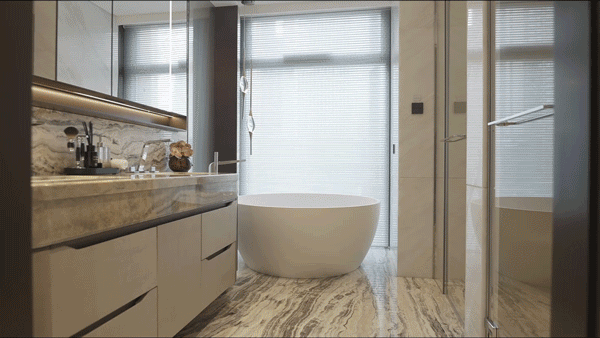 古奇黑、芬迪白、古堡灰、鱼肚灰、孔雀开屏等奢石的运用,每一块都是全球甄选的珍稀石材原料,自带豪奢高级气质,为空间增添无尽的美感与价值。