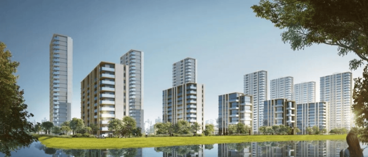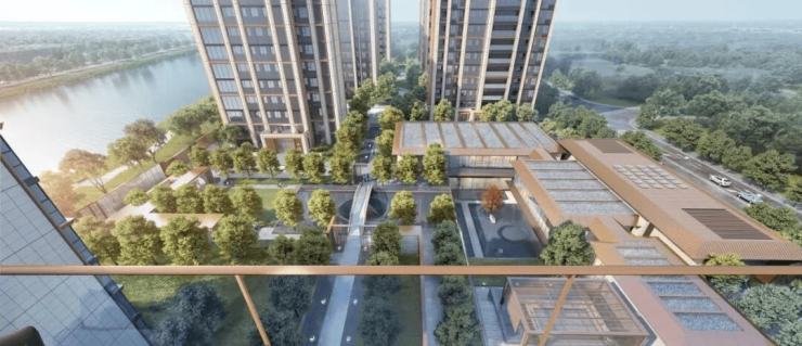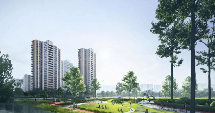 内部约35%绿地率,铺排3大花园组团、10处景观生活场景,层层递进,与外界呼应融合,形成气脉相连的生态大境。