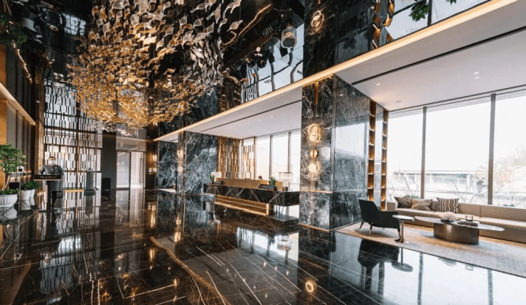 借鉴纽约艺术豪宅551West 21st Street公寓,采用金色画框设计外观,大面积运用高透玻璃,营造室内外熠熠生辉的光感空间。