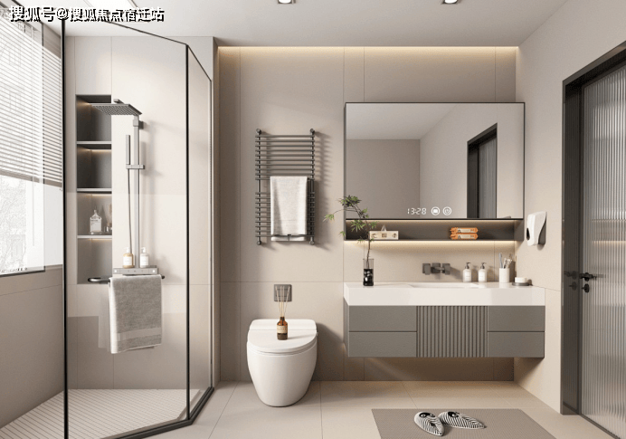 精致的卫浴:双卫生间均对台面、柜体、镜面进行了系统性设计,合理研究柜内、镜后的储物格局,并选用摩恩、科勒等一线大牌的淋浴用具,品质与实用性兼得。