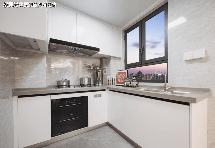厨房的仪式:L形厨房台面布局,让洗切炒端的动线更加科学合理,同时配置老板灶具、多功能网红大水槽、厨房凉霸、12套洗碗机、高级浅灰配色橱柜,让烹饪成为享受。
