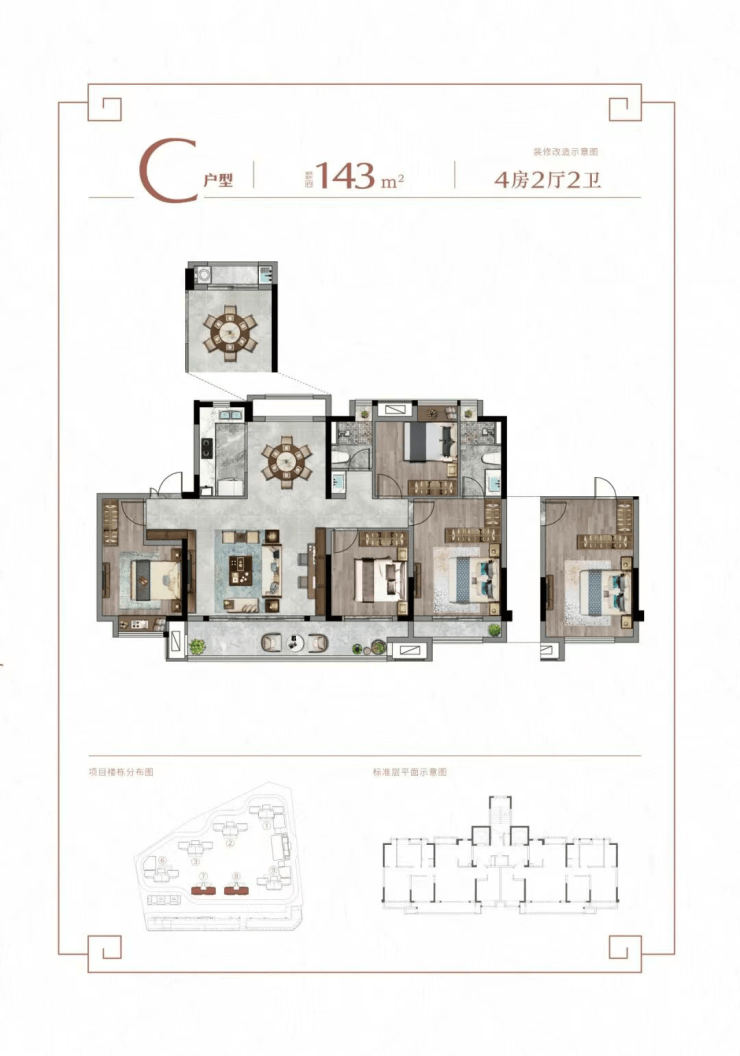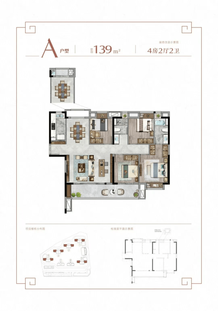 现代中式建筑大堂,悦启东方门庭之风仪,由此进阶塔尖圈层生活高度。以现代中式写意生活园景,匠造“一环多节点”,绘制砾石绿岛、景观会客厅、疗愈花园、林间客厅、全龄活动乐园等五幅致美画卷。