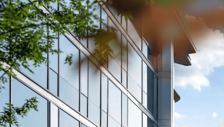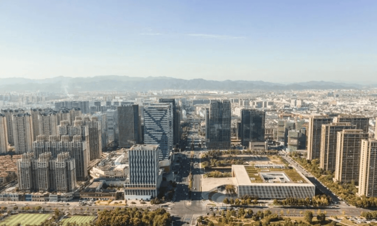 全铝板+幕墙实景外立面,稠江新城市天际线。