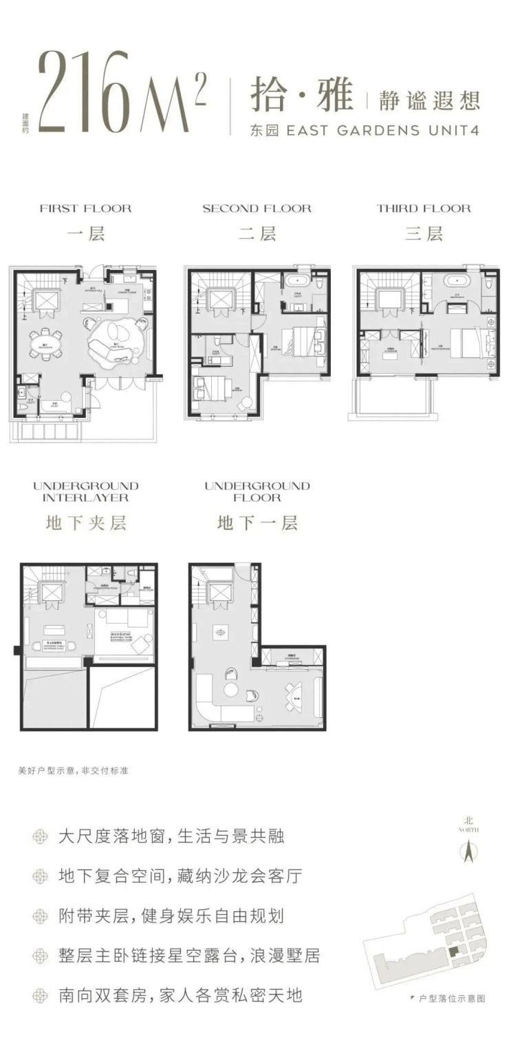平均约60%高附赠率,建面约180-210㎡城央风貌墅邸,立体墅居,拓展空间多维创想。