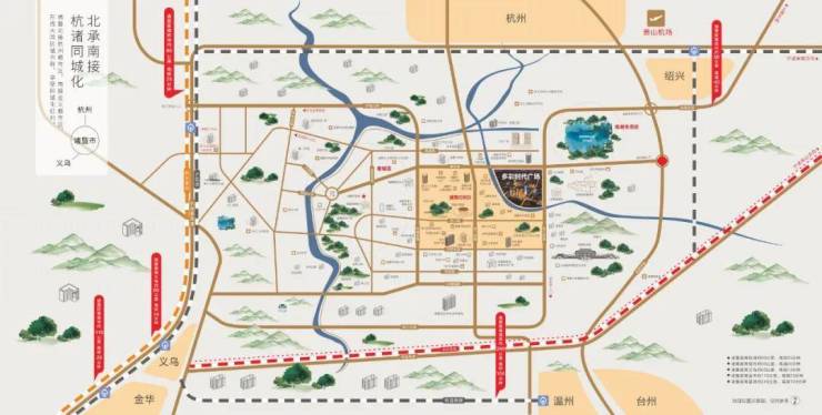 商圈环绕,万达广场,万风新天地,不夜城商圈核心区域,自带2.5万方配套商场。距万达直线500米,步行5分钟到达;距万风新天地2公里左右,开车5分钟。我们项目位于两大商圈的核心位置,并且我们自身还配有2万多方的商业体,超市、健身房、儿童教育、吃喝玩乐一应俱全。无论投资还是自住,都能享受最大的便利性。项目毗邻诸杭线城际铁路~,预计两年内通车。杭州第二绕城高速也是直通诸暨的,现已全面动工,预计今年年底之前完工。三十万固定人口,5公里内多个旅游景区,1.5公里就是三甲医院,政府办公,商务办公,商务办公核心区。