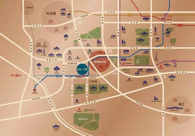 联发锦里——坐落在天津城市迎水道华苑西,地处京津冀黄金结合点,精武文化发源之地,坐拥华苑西和海泰东两大繁华区域,紧靠大学城各级教育资源丰富,配套设施齐全成熟,交通出行十分便利,步行十分钟即到地铁三号线大学城站,距离新一中心医院仅十分钟车程,一路之隔的“国家级农业产业化龙头企业”天津红旗农贸市场集蔬菜、水果、海产品、淡水产品、粮油肉类和副食批发零售于一体,完全满足业主日益增长的消费需求。