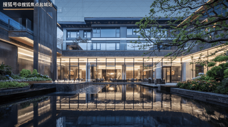 山水入画营造下沉式中央庭院 ,约12米飞流星瀑,臻选蓝翡翠奢石打造银河水境,百年丛生乌桕封藏四季风景,邀山水融自然,一方东方禅意画境