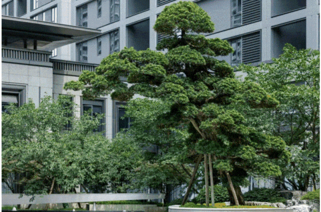小区三个大门,以仪式门庭和名贵树木相迎,各有各的气派。