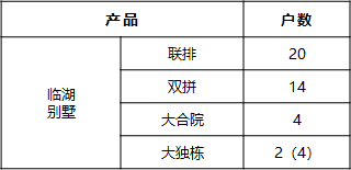 |产品类型:洋房(黄色标签),合院(红色标签),临湖别墅(紫色标签)