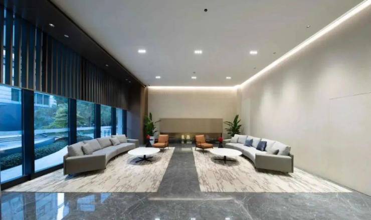 走进PARK699的奢阔大堂,你会发现“品质”藏在每一处细节里。拉丝香槟色铝板搭配天然大理石,灰色光面石材地板简雅精致,当建筑成为凝固的诗篇,精奢感早已渗透进每立方的空气里。