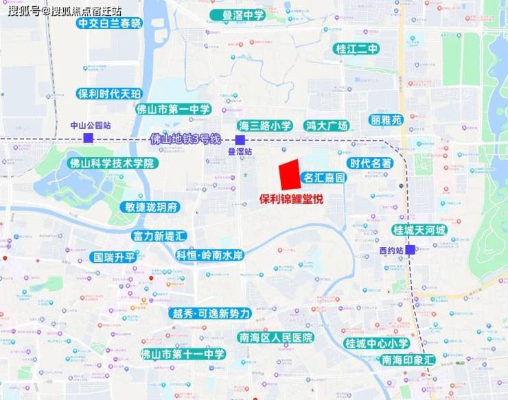 从地图上来看,项目距离3号线叠滘站仅约360米,2站桂城、5站广州,3公里内可覆盖千灯湖、祖庙双城芯多个商圈。