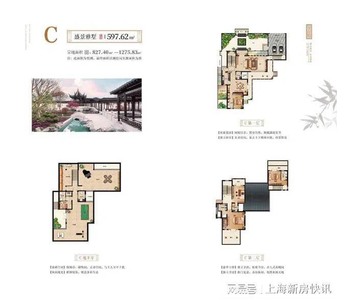 【在售别墅产品介绍】 一、小桥流水人家(1.5亩~2亩) 建筑面积:597㎡ 户型:5室3厅4卫 花园:1.5亩—2亩 总价区间:1600万一2200万 江南水乡特有的小桥流水人家风格 交付:毛坯现房