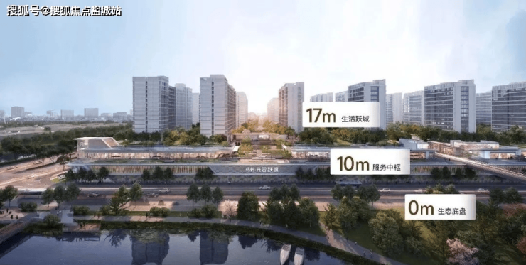 保利光合跃城的设计充满了创新和前瞻性。项目采用了三层立体城市功能叠造的设计理念,通过0米公园、10米街区和17米住区的垂直布局,实现了自然、生活和居住的完美融合。0米层是自然滨水的公园底盘,为居民提供了亲近自然的绿色空间;10米层则是烟火街区,涵盖了丰富的商业和生活配套设施;而17米层则是低密住区,以云端墅质洋房的形式,为城市高智精英提供了高品质的居住环境。