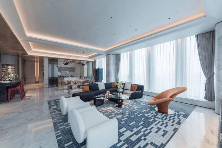 大师作品让从地段上的地标升级为品质上的地标。举一个重要的数据,大师们在约400方的黄金面积段中,拿出约150方来做客餐厅,动区面积达到了60%以上,对于「新钱」们兼顾商务社交和自用属性堪称完美。