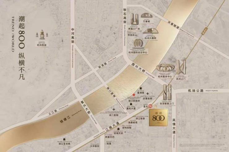 地铁6号线星民站之上,与奥体中心、滨江区政府一站之隔