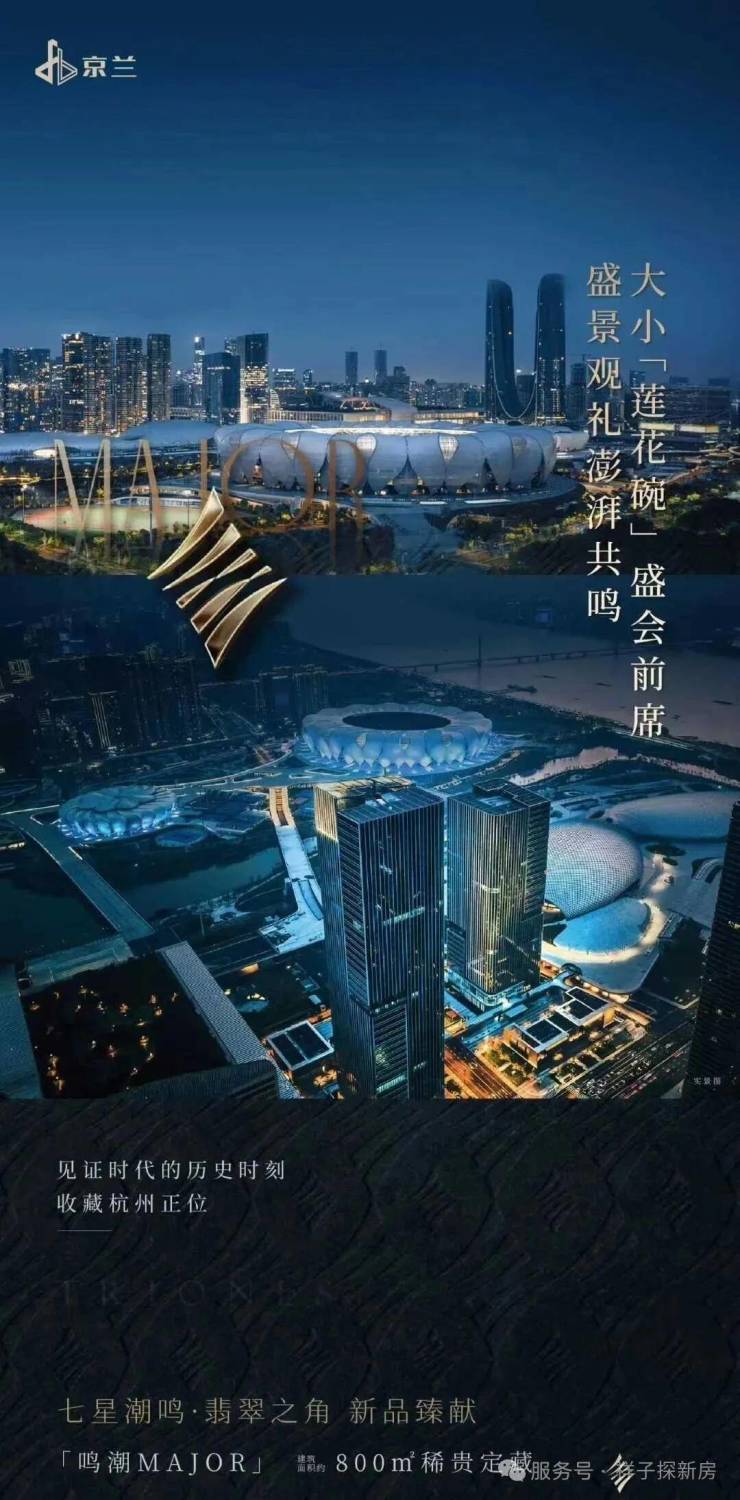 “翡翠”800的核心魅力,首先源于其无可复制的地理位置。它雄踞一线钱塘江景前排,推窗即揽奔腾不息的钱江潮,感受“潮来天地青”的壮阔意境;向东南远眺,则是西湖群山的层峦叠嶂,云雾缭绕间,尽显江南山水的灵秀之美。更难得的是,它与杭州奥体博览城的大小莲花碗(杭州奥体中心主体育场、网球中心)实现了零距离接触,让业主在家中便能将国际赛事的激情与城市的璀璨夜景尽收眼底。这种将江景、山景、城景与体育文化地标完美融合的天赋优势,使得“翡翠”800成为了名副其实的城市观景台。据了解,“翡翠”800的总价将从5000万起,这不仅是对其稀缺资源的认可,更是对其高端定位与卓越品质的直接体现。