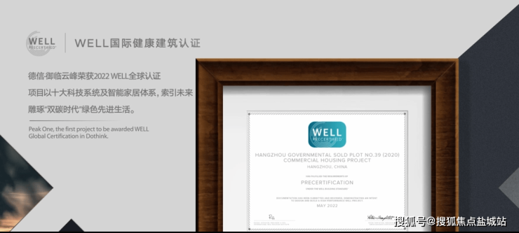 ▲项目WELL认证获奖证书