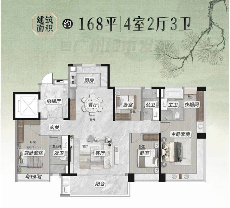 均是2梯2户设计总高31层,两栋楼全部都是168方的大平层户型。