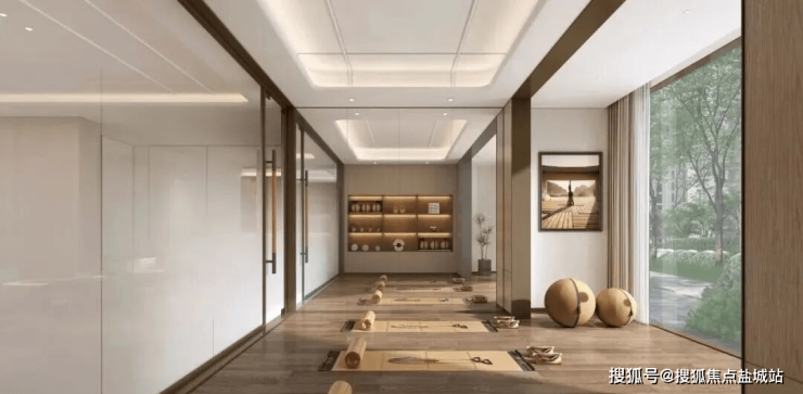 无界屏玻璃中央会客厅,270度视野无敌!未来业主可以这里品茶、会客、休闲、健身,兼顾社交场景与美学享受,满足全龄业主的品质生活所需。