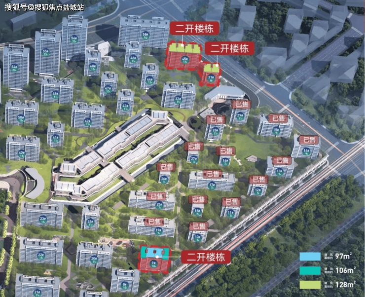 建面约97㎡起步户型,三房两厅两卫格局,南向三开间,次卧与客厅的阳台相连,打造大尺度的双联阳台,还有很大的亮点就是玄关设计,可以很好地护好后期业主的隐私。