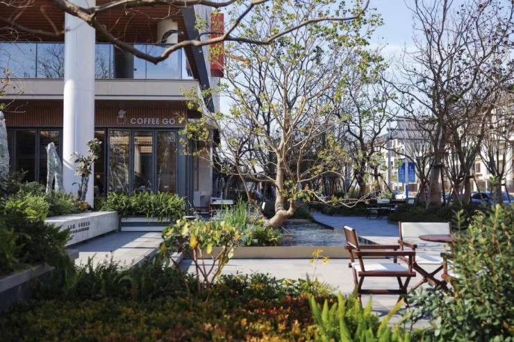 项目坚持开放性社区精神IP,形成多层级集街角咖啡厅、互动台阶、立体屋顶花园等社交空间,与城市无界互动。围墙、配套与门头形成一体,连接街角配套设施,构筑社区及城市活力空间,拉长了与城市的互动空间。