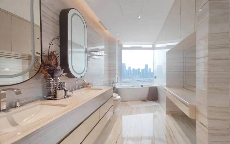 甄选GAGGENAU、Dornbracht、LAUFEN、kaldewei等全球尖端品牌,品质匠奢样板,荟聚鎏金艺术,领驭时代审美,重构杭州大平层的空间想象。