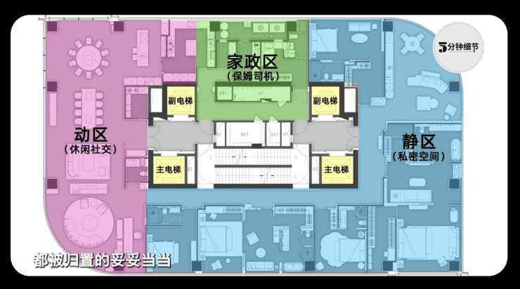 连司机、保姆都有独立的电梯去往各自的工作、休息区