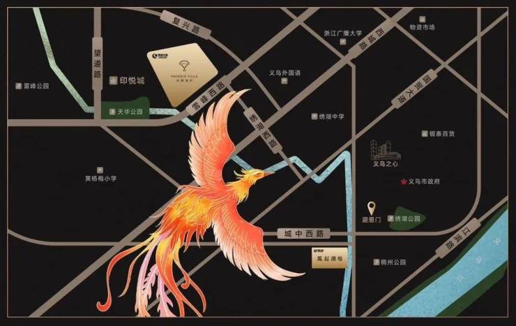 凤栖逸庐地处义乌主城核心区前洪之地,位于古时莲湖北侧,凤栖高台之上,汇聚创富精神,成为一座灵秀人文之地。与凤起潮鸣一南一北并立于绣湖两侧,纳一城贵韵所在。
