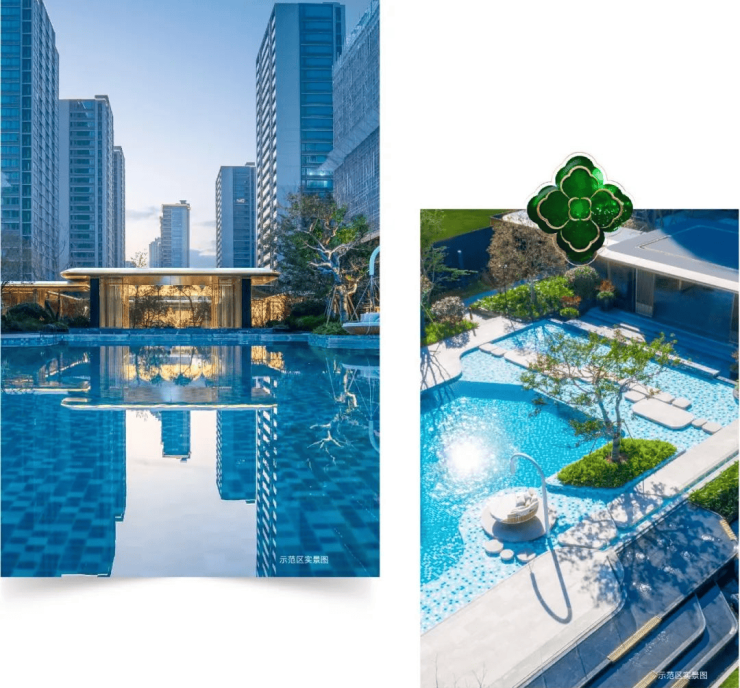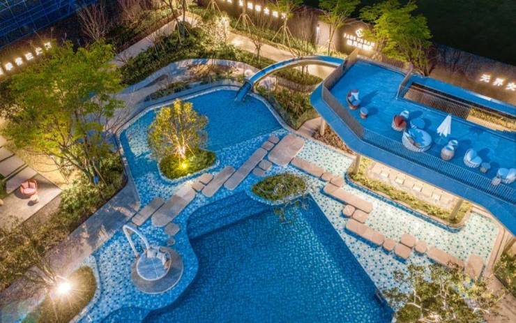 桂月云翠的下沉式庭院是「浓缩了山川河岳的东方园林」,泳池是「充满海洋度假风的社交综合区」。桂月云翠让露天泳池最大限度地开放起来。