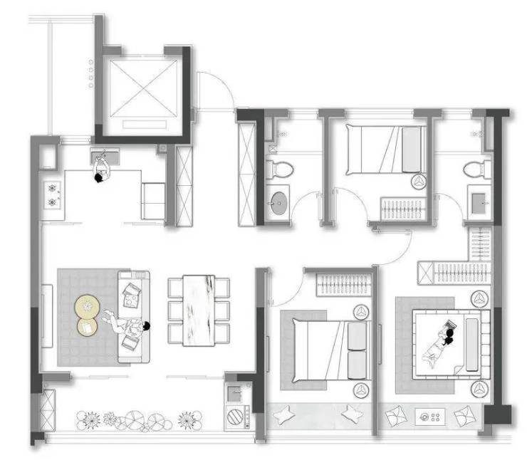 全系宽境户型以更为多样化户型选择满足从独居到三代同堂的家庭结构。同时精研当代家庭关系,融入LDKB一体化等设计,打造家人情感交互场,实现家庭平权与私人空间之间的平衡;并针对当代人生活痛点,精研收纳空间等,演绎都会生活的自由型格,让情感与温度一同蕴发。