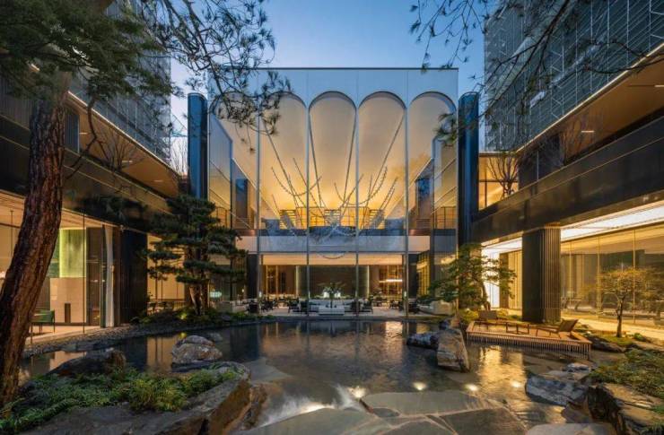 经过大量文化拆解与属地研究,团队从北宋名作《千里江山图》中提取部分景别,将东方山水风格、日式造园精髓以及都会生活意蕴,从旧传统中获得新价值,这同样是植弥加藤庭园精神的衍传,不是一代更新一代,而是一代传承一代。