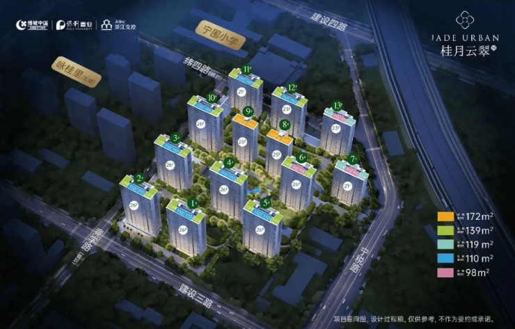 桂月云翠共打造13幢21-26F高层住宅,总户数1130套,户型建面约98㎡、110㎡、119㎡、139㎡、172㎡,精装限价39500元/㎡(含精装3500元/㎡),总价预算在300—700万级。