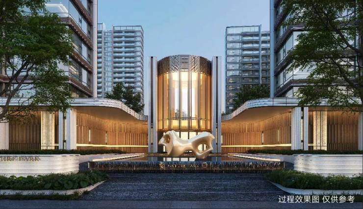 “门庭礼序 冠冕相迎”,来自宋代官帽的形象,高约 12 米,长约58米,象征着业主步步高升、事业有成。