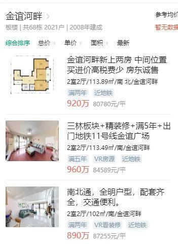 房价方面,距离地块最近的新房项目是招商在三林新拿的地块,联动价70000元/㎡;周边次新二手房挂牌均价8w+