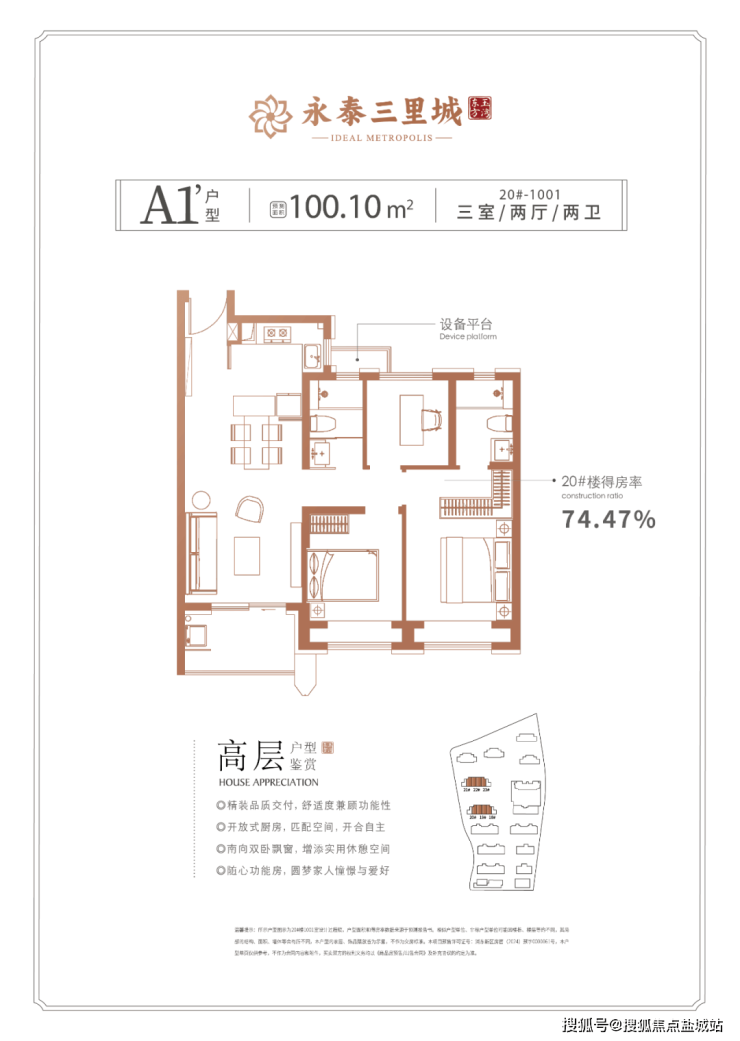 项目主推建面约100㎡左右,三个主力户型布局非常相似,都是功能性和尺度感完美结合的明星户型。