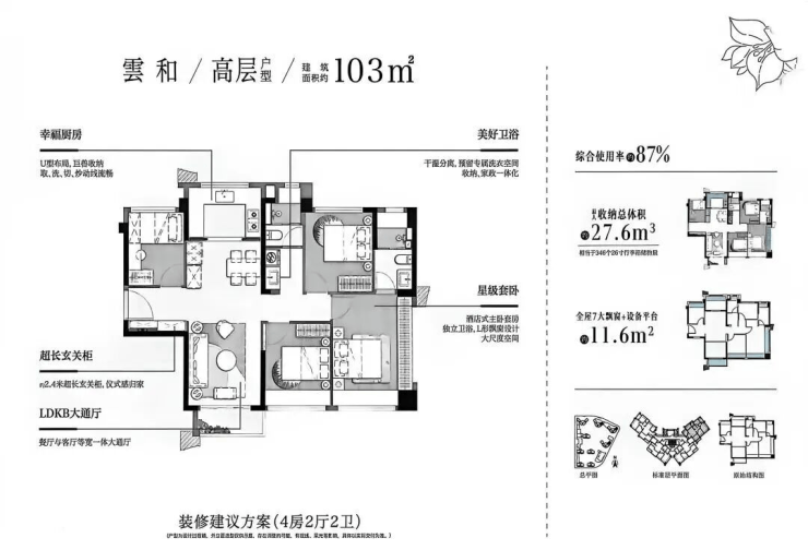 •主打95 - 124㎡的3至4居户型;整体户型多飘窗加外阳台,且不计入产权面积,适配改善型居住需求;