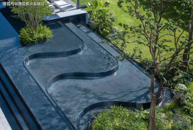 形象取决于空间,设计在花园里做的不仅仅是水,而是创造空间,让其流入每栋建筑,并可以带领人们从一个地方到另一个地方。水没有任何颜色,但如果把深色物质放在水下,它就会变成镜子,这也是设计想将建筑整合进水中的创意。