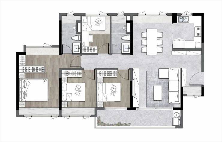 不得不认,最令我们感到惊叹的,是它的建筑面积约125m²四房户型。