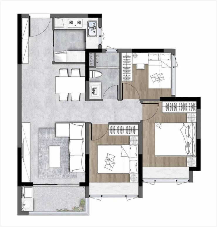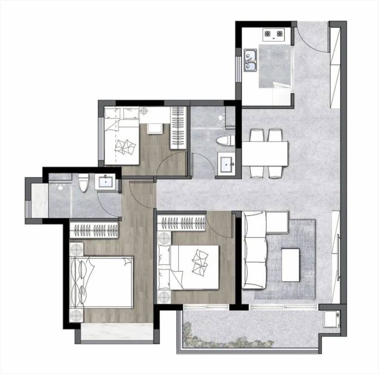 81m²的建筑面积做到了3房,给予二胎家庭更低的准入门槛;客餐厅一体化设计,弱化两者的空间界限,家人聚首更能纵享欢乐。(具体请以实际交付为准)