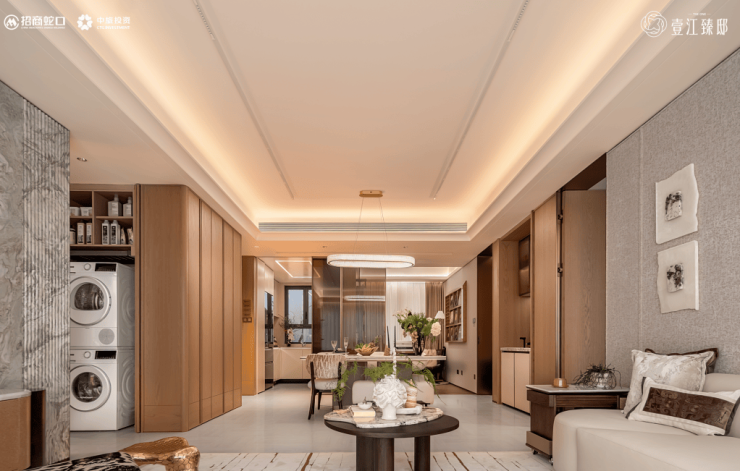 而购房者如果介意缺少晾衣空间,壹江臻邸在预留隐形晾衣架位置的同时,也贴心设置了专属家政间,家政工具全收纳,并交付博世洗烘套件,这是市面上2000万级别豪宅都不曾拥有的交付标准。