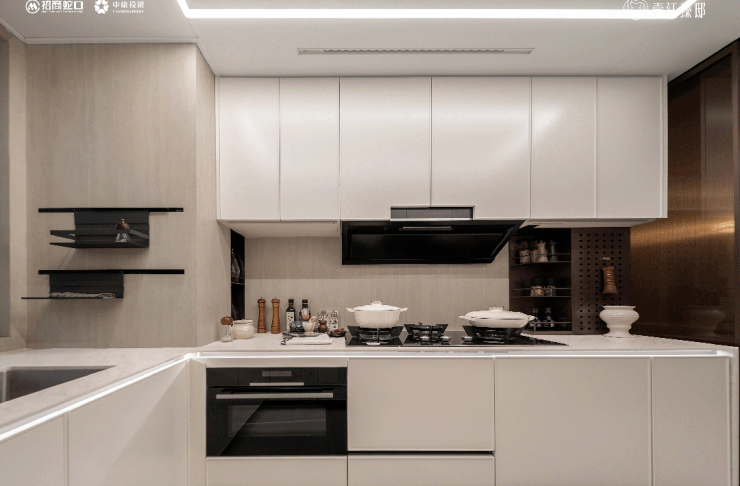 不止是家政间,整个户型空间的收纳交付,也是鲸吞级的,餐边柜,一样是交付标准,奢石台面,配置下水,家人在厨房烧菜,也不妨碍餐边柜泡咖啡、洗茶杯。