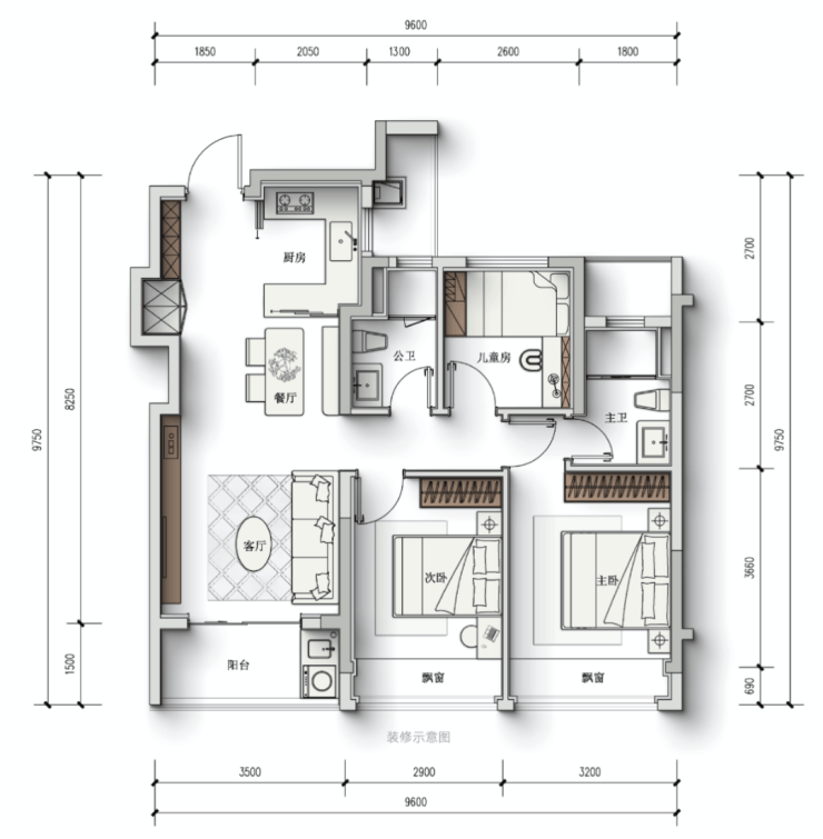是的,户型正在越做越大。所以当看到下面这个建面约112方的四房时,内心是有一点感动的:又有楼盘认真抠起了户型。