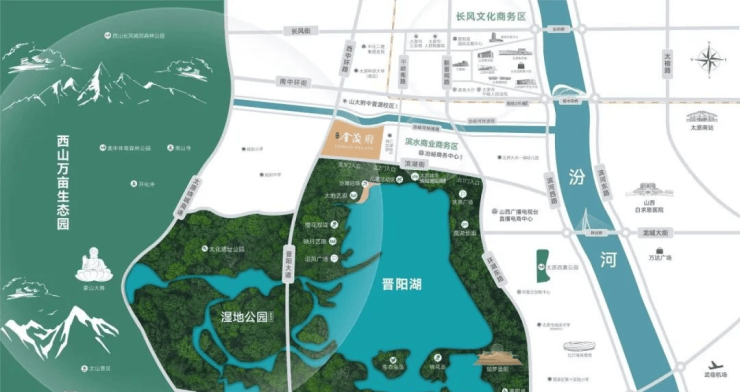 晋阳金茂府,位于太原晋源区,晋阳湖公园的北侧。总规划十栋住宅楼,容积率4.2,绿化率30%,总户数620户。住宅楼,一字型排列,每一户都可以直面晋阳湖公园,俯瞰晋阳湖公园全貌,美景尽收眼底。