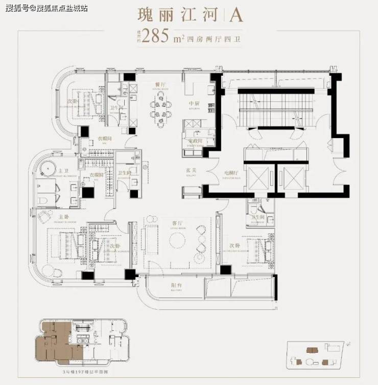 主力户型285㎡,设计融入了两梯两户尊贵配置,配备独立入户电梯厅,营造一步到位的豪宅氛围。入门即享玄关与独立储物间,尊崇体验从踏入家门的那一刻起。