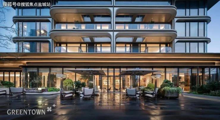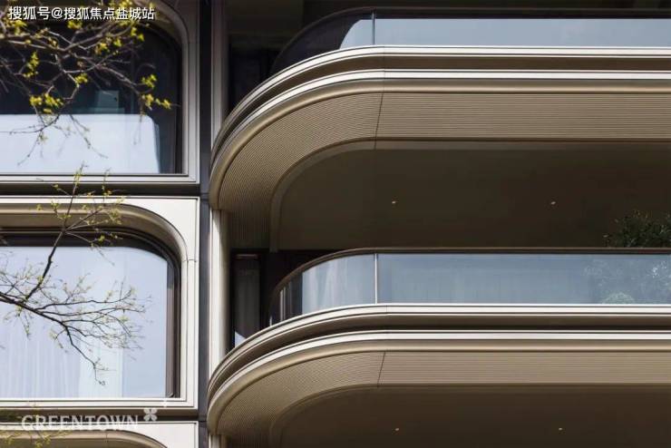 采用石材基座与金属线条巧妙搭配,香槟色铝板点缀其间,整体设计以宽阔的环幕玻璃为主,特别之处在于引入270°整块环形玻璃,这不仅显著提升了居所的景观价值,更增强了室内采光效果,赋予建筑独特的视觉魅力。