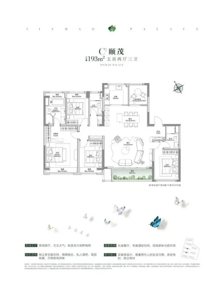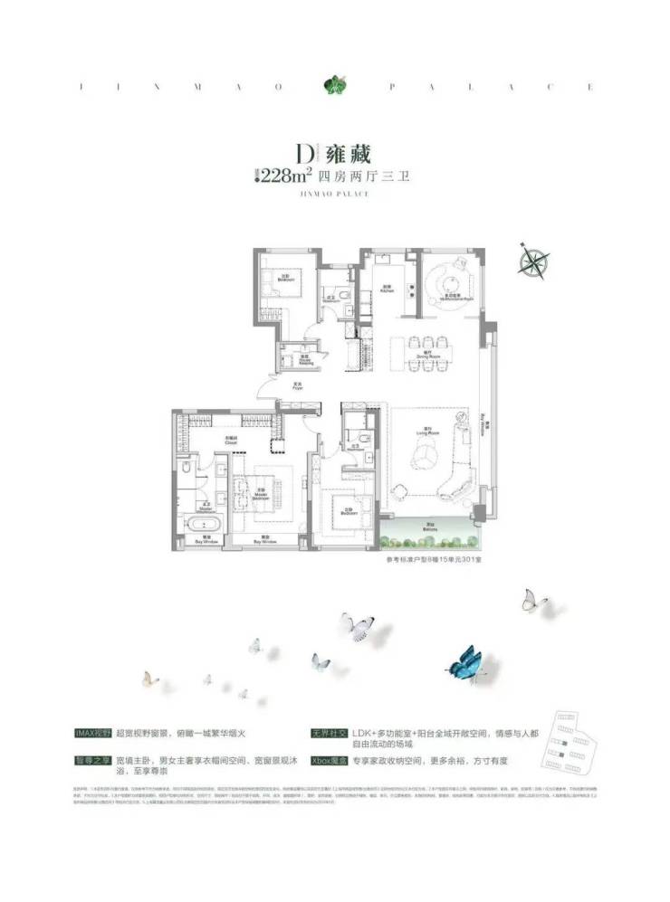 项目建面约228平的户型,是板块内少有的大面积产品!